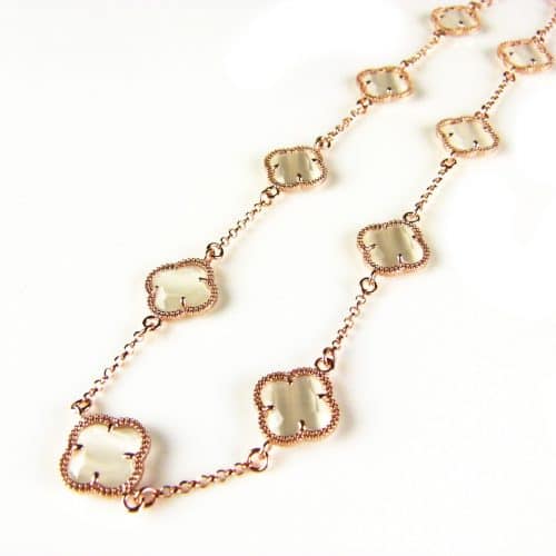 model 10 Fiori collier in zilver roze verguld 10 bruine klavers