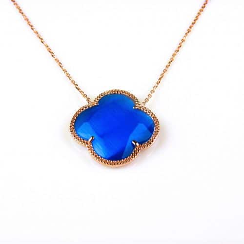 model Fiori kleine klaver ketting in zilver roze verguld kobaltblauwe klaver