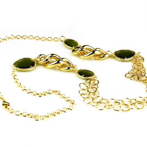 model Chanel collier in brons goudkleurige schakels en groene stenen