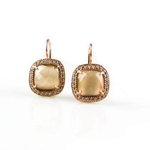 model Bonbon oorringen in zilver roze verguld gezet met bruine steen