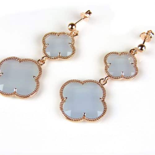 model Double Fiori groot oorringen in zilver roze verguld doorzichtige bruine klavers