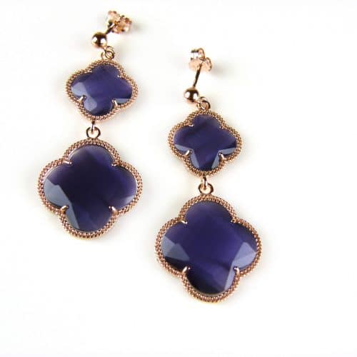model Double Fiori groot oorringen in zilver roze verguld paarse klavers