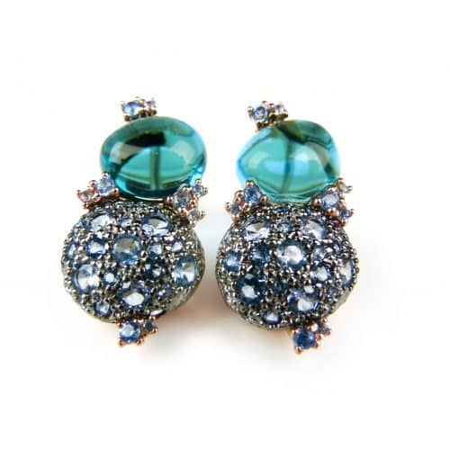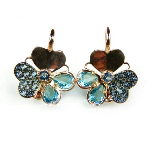 Oorringen Model Double Blossom zilveren oorringen oorbellen gezet met bruine stenen