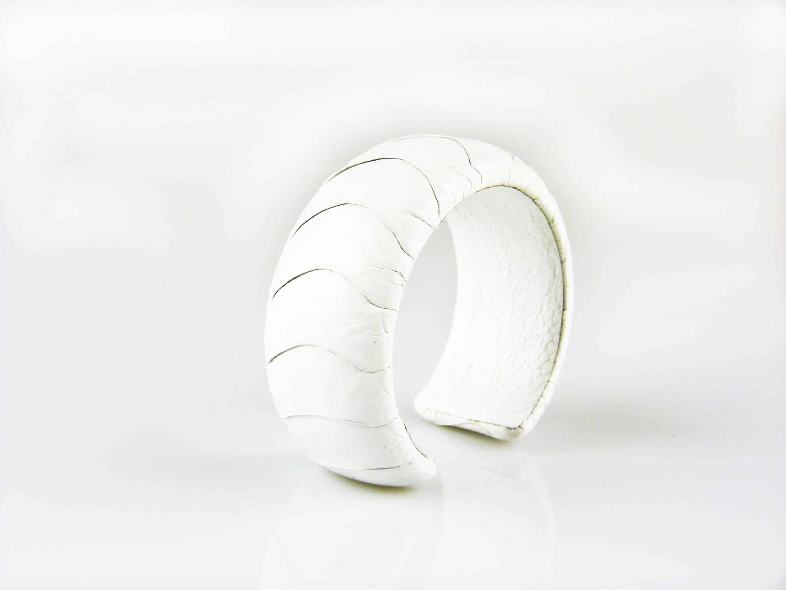 armband in struisvogelleder 30 mm breed kleur snow wit