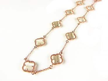 collier in zilver roze verguld model fiori 10 parelmoer, collier in zilver roze verguld met 10 bloemmotieven