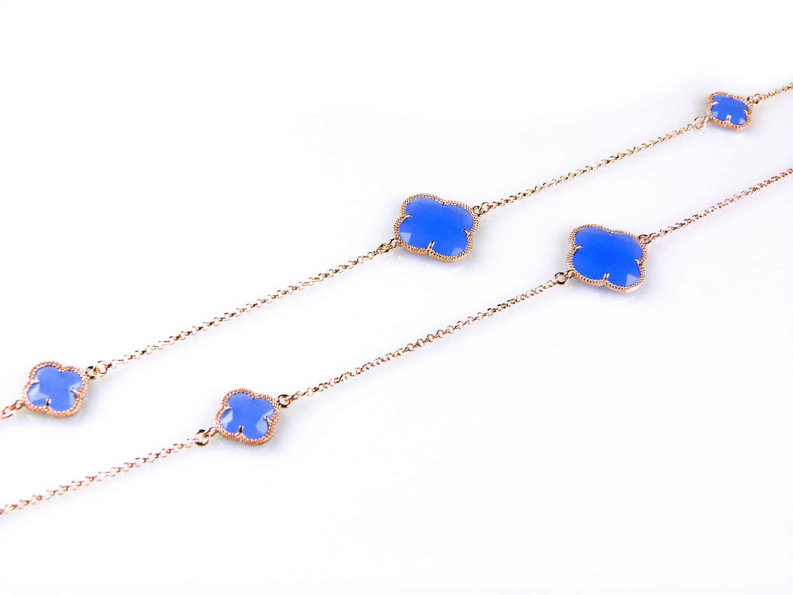 collier in zilver roze verguld model fiori gesloten klavers kobaltblauw, collier in zilver roze verguld met 6 bloemmotieven
