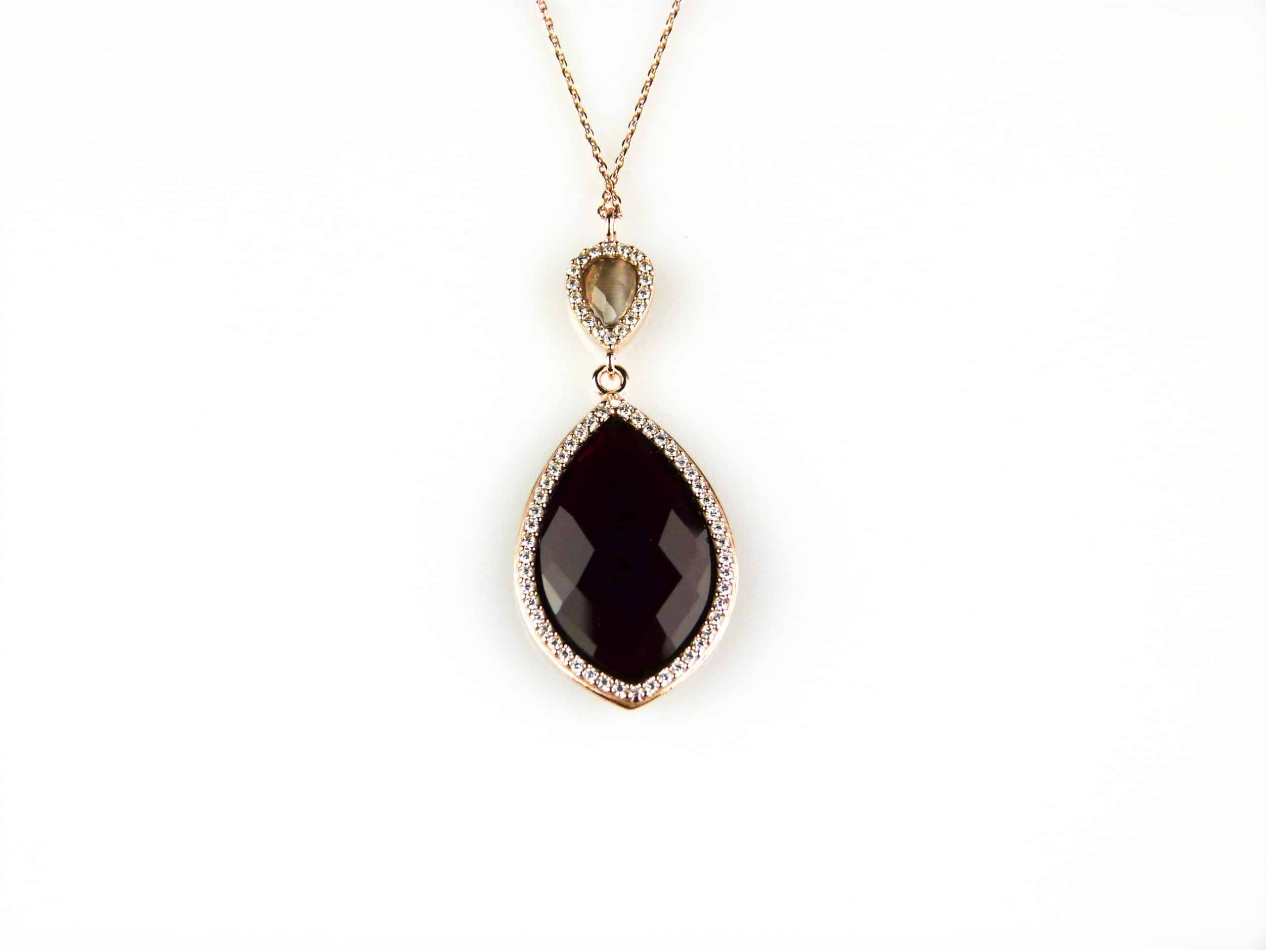 collier in zilver roze verguld model markies gezet rode steen en cubic zirconia