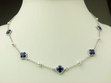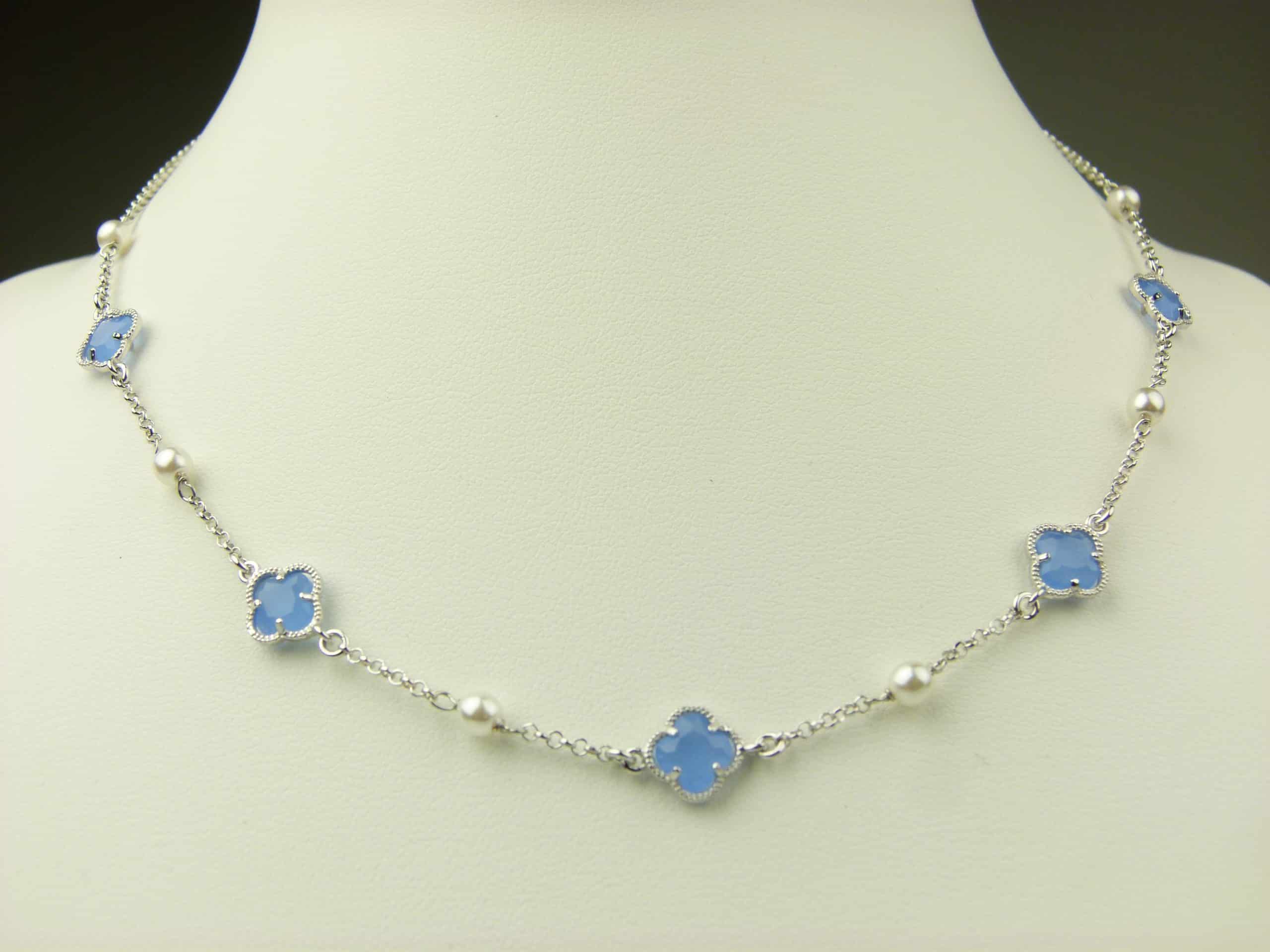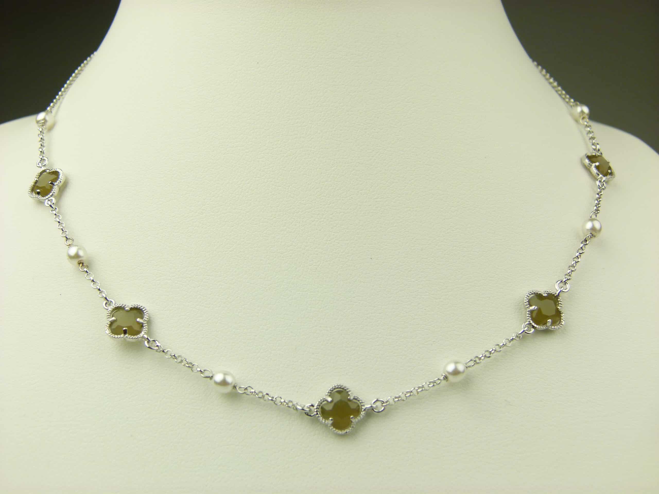 lengte ketting = 45 cm met een verlengstukje van 5 cm zodat de ketting op 50 cm kan verlengd worden grootte bloemen = 8 mm