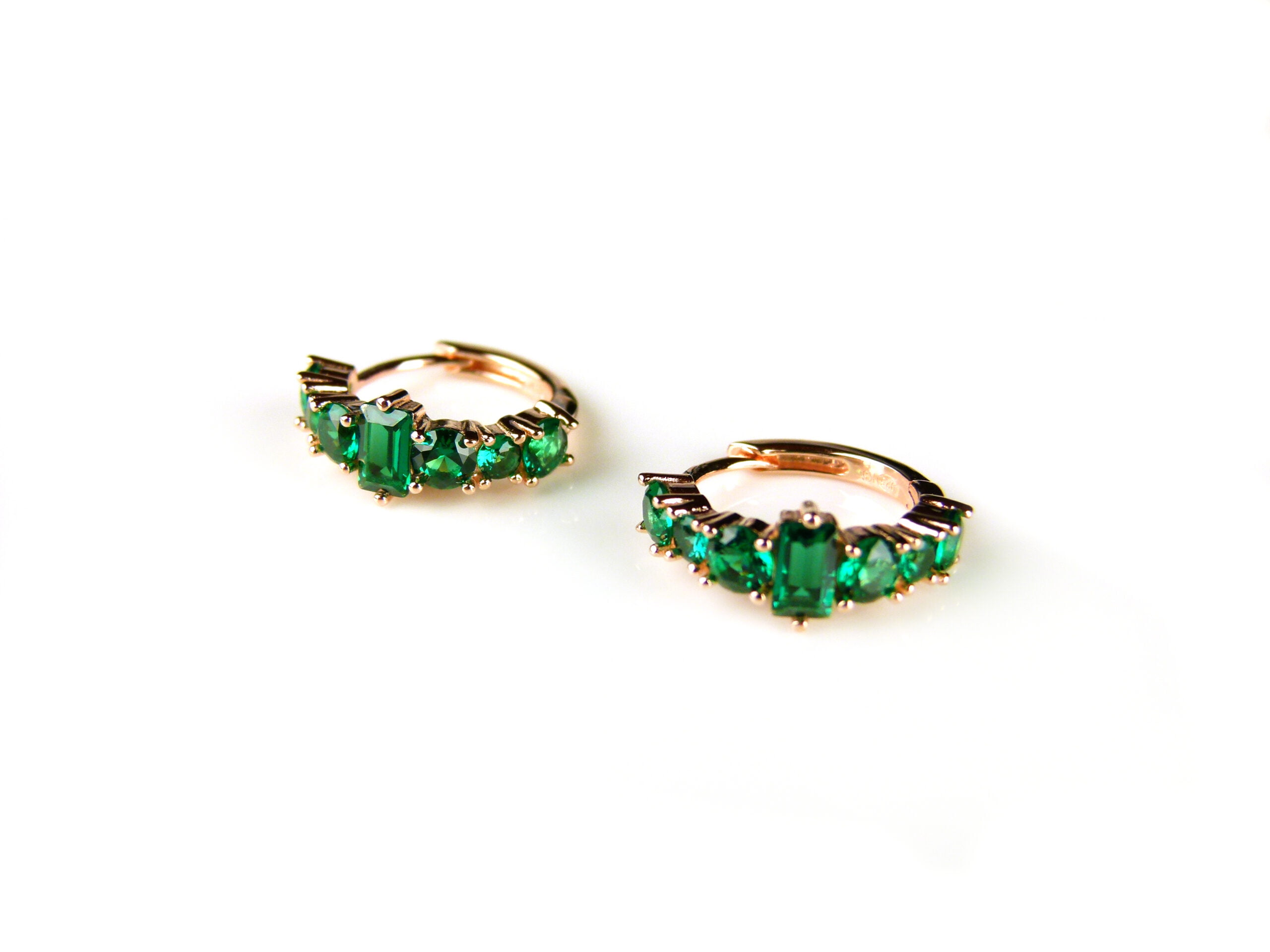 Kleine zilveren creolen oorringen oorbellen roos goud verguld met groene stenen