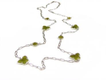 Deze lange zilveren halsketting collier halssnoer gerhodineerd Model Vlinder en Bol met kaki groene stenen koop je veilig en eenvoudig in onze webwinkel. Net zoals bij de juwelier bieden wij uitstekende service. In onze online sieradenwinkel heb je bovendien rustig de tijd om jouw nieuwe sieraden te passen. Je ontvangt een garantie van 6 maanden op productiefout.
