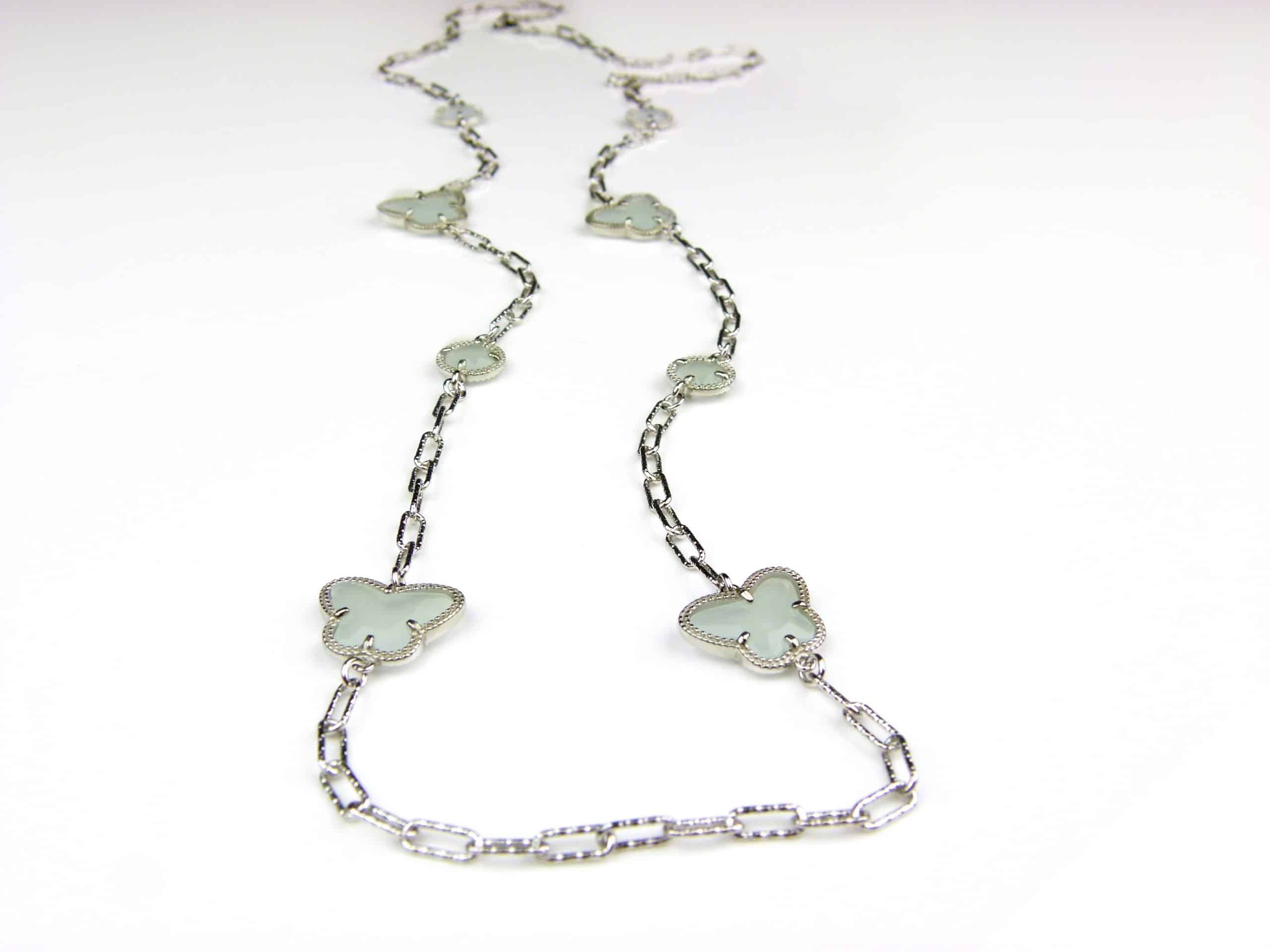 Deze lange zilveren halsketting collier halssnoer gerhodineerd Model Vlinder en Bol met licht blauwe stenen koop je veilig en eenvoudig in onze webwinkel. Net zoals bij de juwelier bieden wij uitstekende service. In onze online sieradenwinkel heb je bovendien rustig de tijd om jouw nieuwe sieraden te passen. Je ontvangt een garantie van 6 maanden op productiefout.