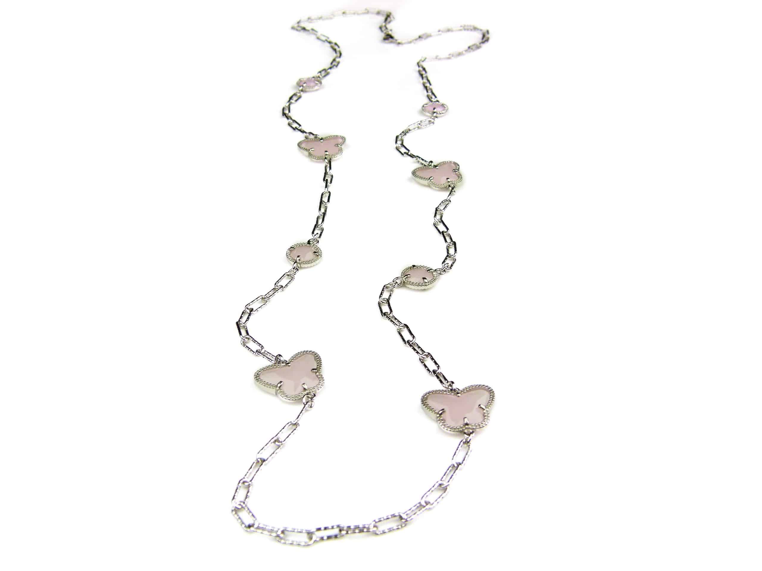 Deze lange zilveren halsketting collier halssnoer gerhodineerd Model Vlinder en Bol met roze stenen koop je veilig en eenvoudig in onze webwinkel. Net zoals bij de juwelier bieden wij uitstekende service. In onze online sieradenwinkel heb je bovendien rustig de tijd om jouw nieuwe sieraden te passen. Je ontvangt een garantie van 6 maanden op productiefout.