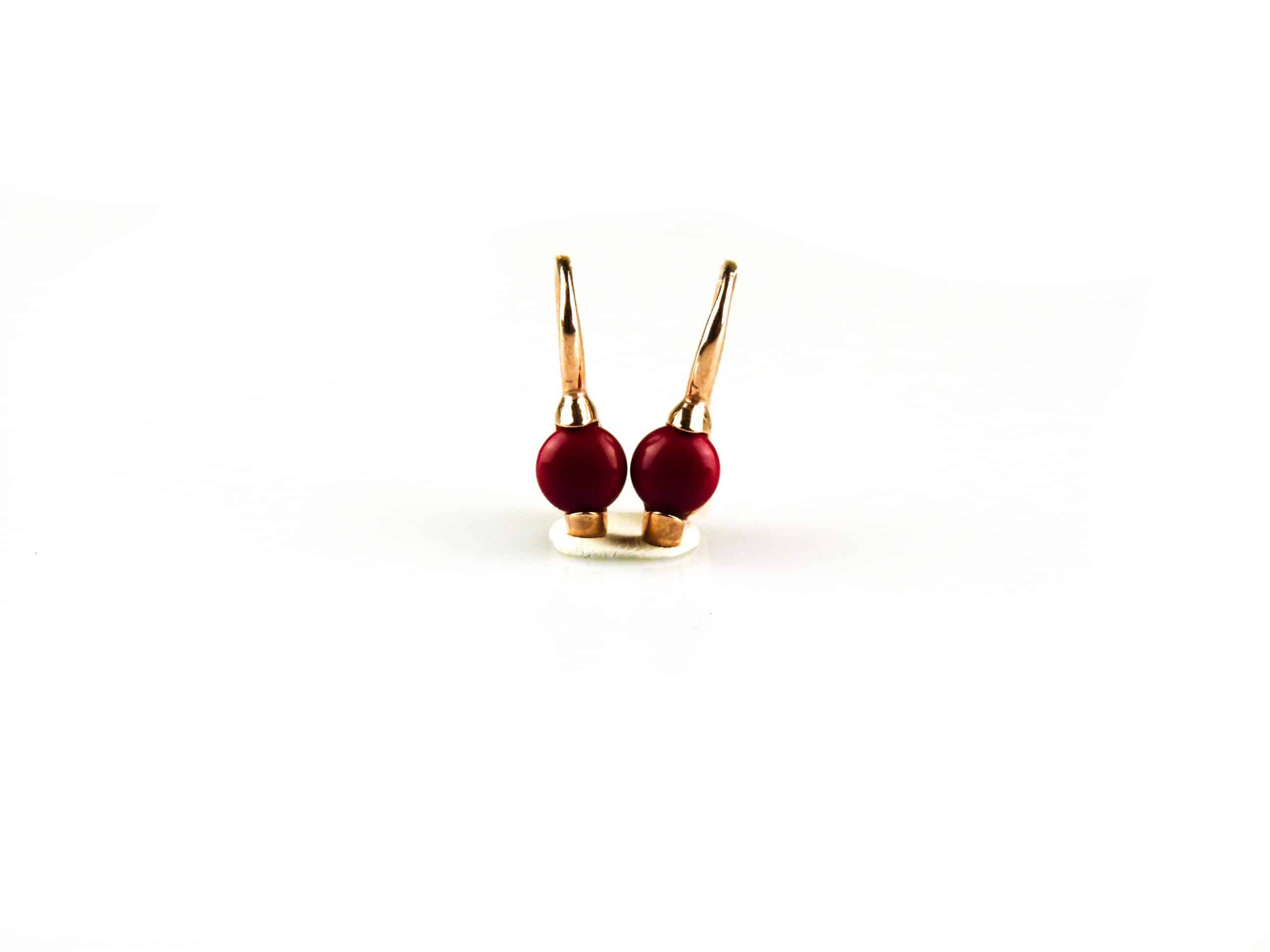 oorringen in zilver roze verguld cabochon koraalrood model Piccolo