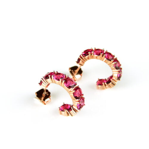 Oorringen oorbellen creolen in zilver roos goud verguld gezet met rode stenen