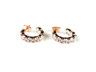 Oorringen oorbellen creolen in zilver roos goud verguld gezet met witte stenen