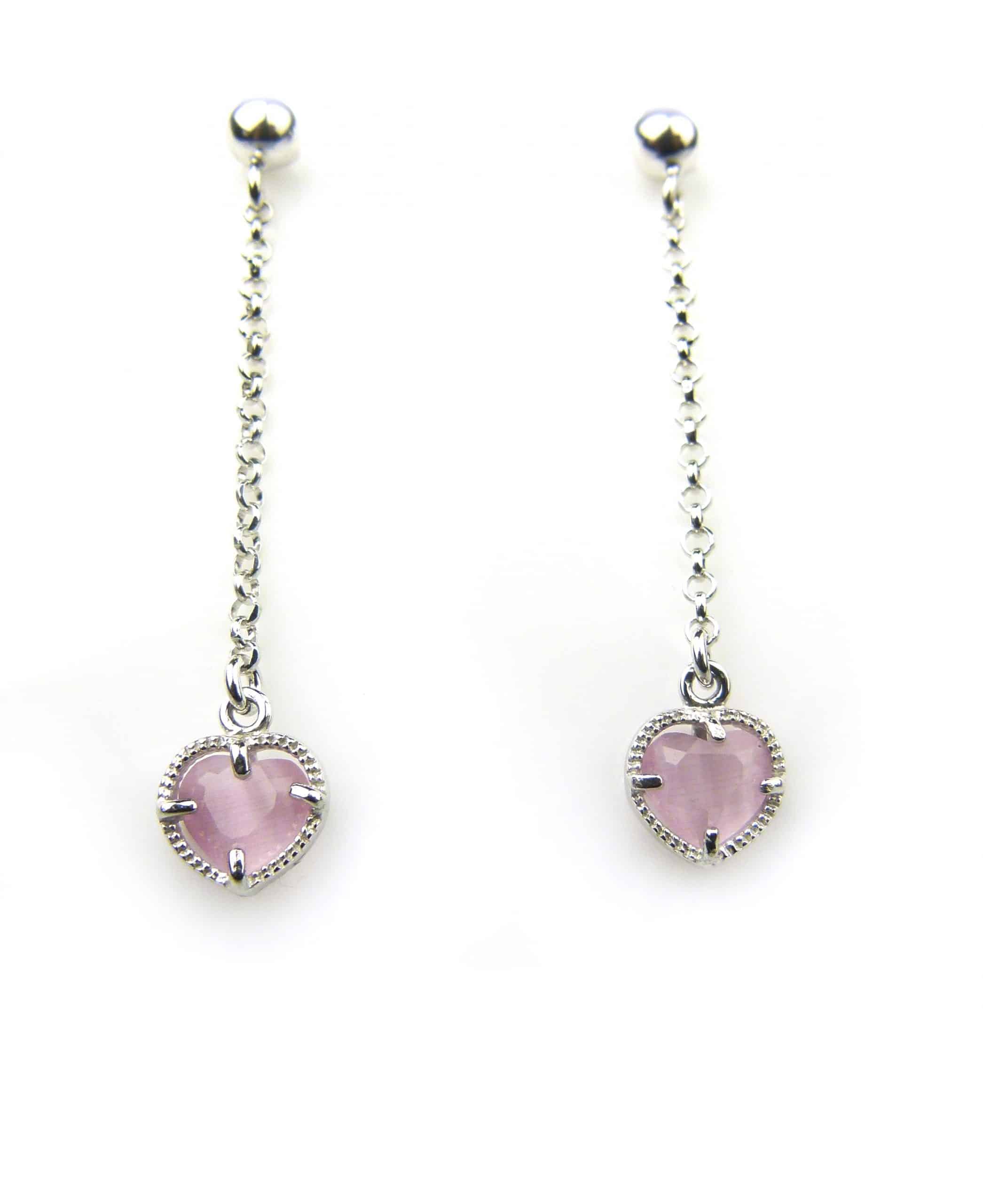 oorringen in zilver model heart met gekleurd hart steentje lengte oorring = 3,5 cm grootte hartje = 8 mm
