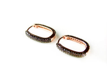 Ovale zilveren creolen oorringen oorbellen roos goud verguld bruine stenen