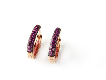 Ovale zilveren creolen oorringen oorbellen roos goud verguld roze stenen