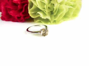 solitair ring in wit goud gezet met natuurlijk gele zirkoon