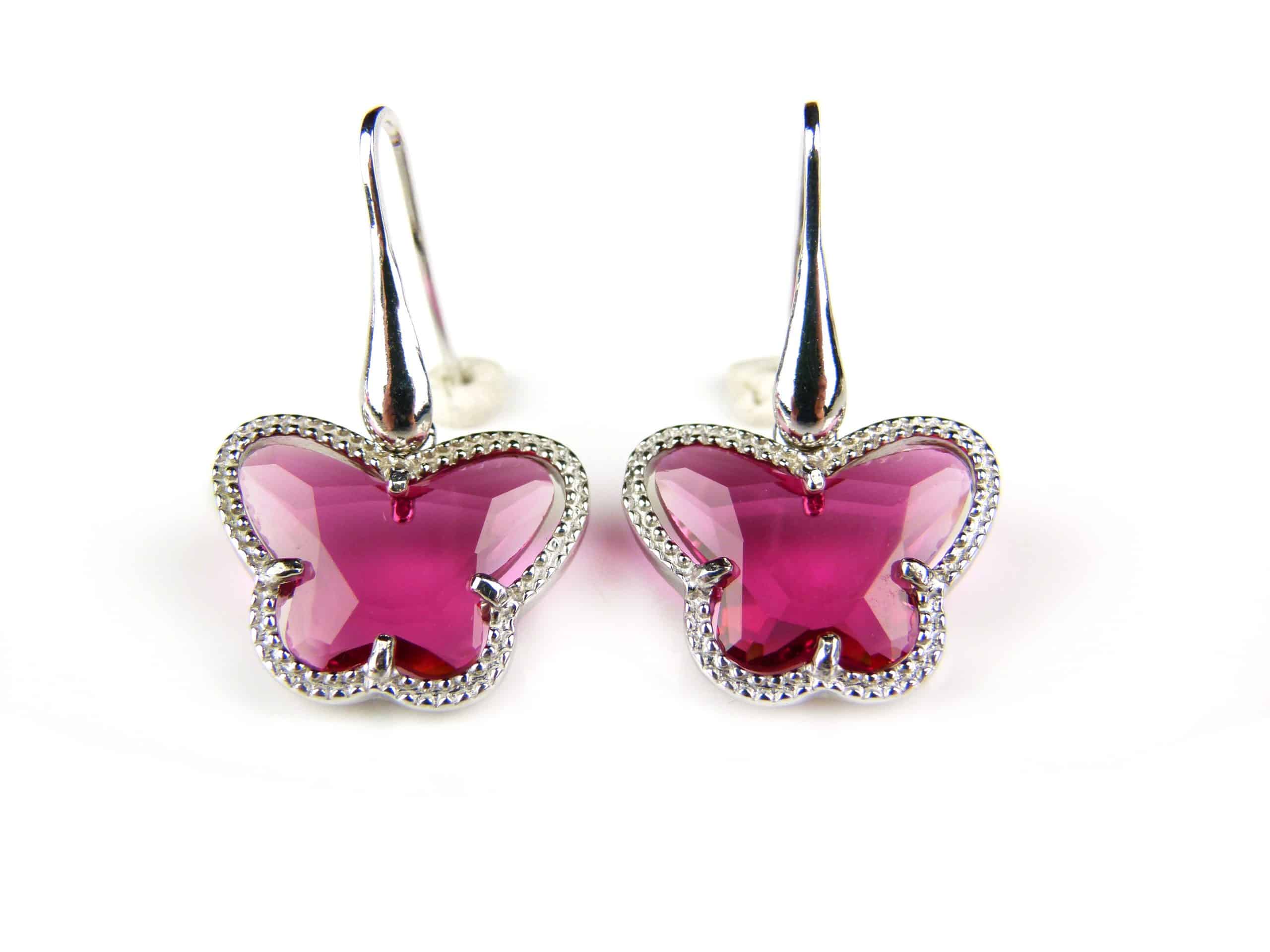 Zilveren oorringen oorbellen Model Vlinder gezet met rode steen