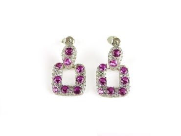 Zilveren oorringen oorbellen rechthoekig gezet met roze en witte stenen